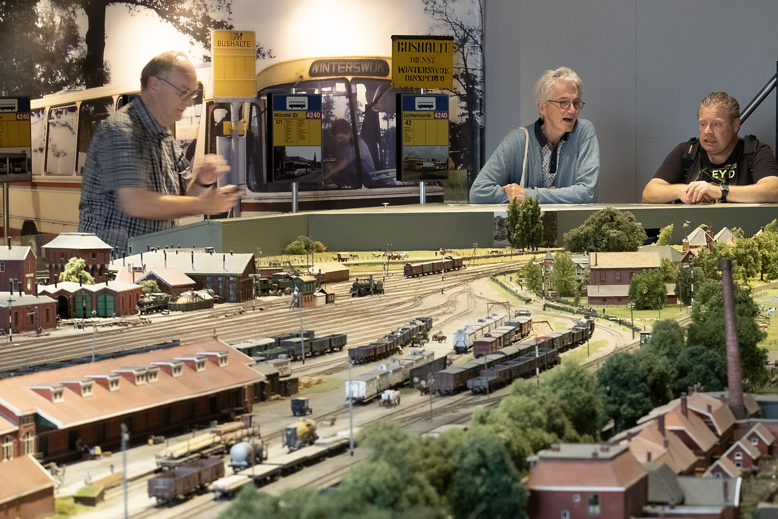Het museum zelf maakte veel goed: een prachtige modelbaan van de stad, het station en emplacement van Winterswijk jaren 50 met veel informatie over en fotomateriaal van de geschiedenis van dit station. Bijgevoegde foto’s zeggen voldoende. Tegen half drie nam de groep weer afscheid van het museum richting het centrum voor een maaltijd in een van de vele restaurants. De terugreis verliep verder zonder vertragingen en in Apeldoorn kon ieder voldaan huiswaarts keren.